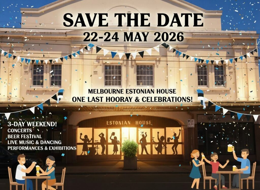 The Melbourne Estonian Society is a welcoming community for anyone interested in Estonian culture and language. Based at the Estonian House, we’re all about bringing people together — whether you’re looking to learn about traditions, practice the language, or just meet friendly faces who share your interests.